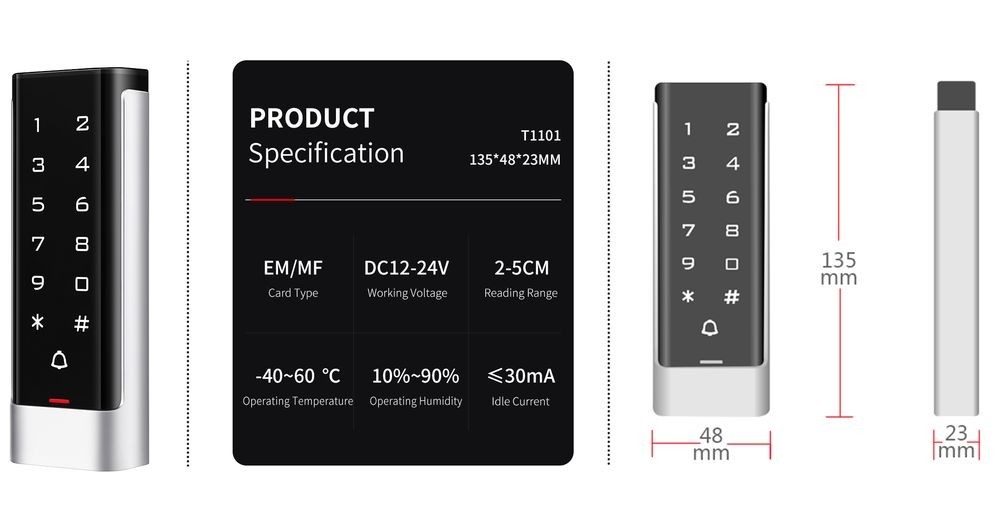 T100EM puutetundlik koodiklaviatuur ja 125 KHZ kaugkaardilugeja sisetingimuste jaoks